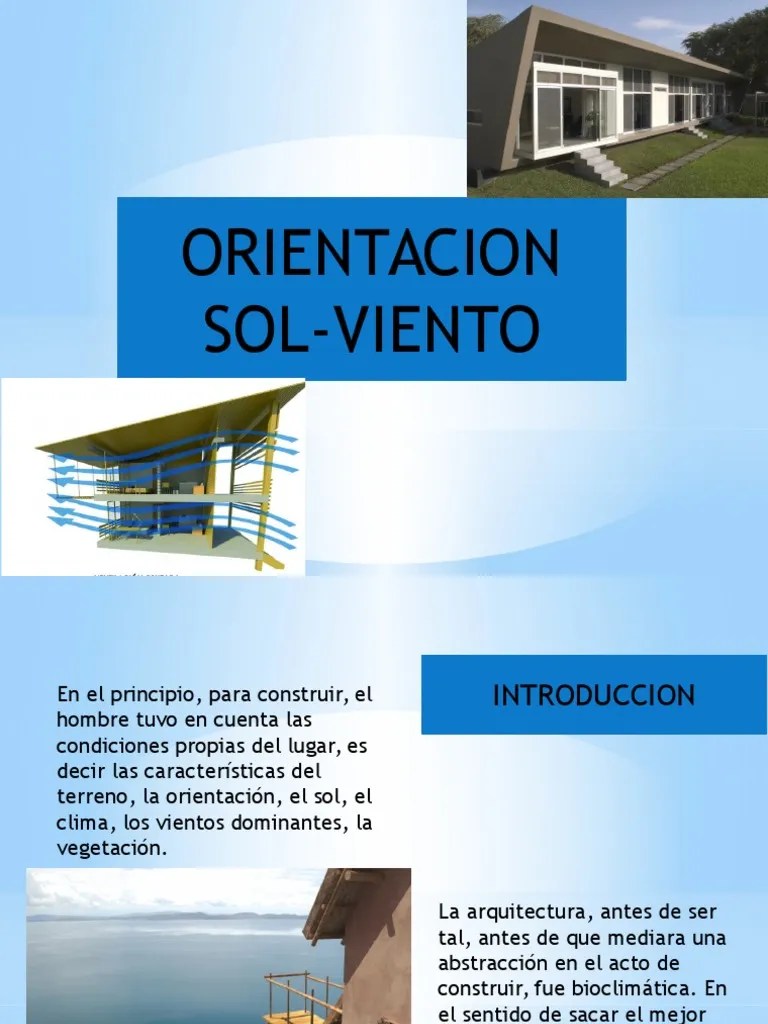 Te recomiendo esta guía de construcción sostenible, creo que te puede ayudar mucho... Y una vivienda bien orientada … Te recomiendo esta guía de construcción sostenible, creo que te puede ayudar mucho. Cómo comentábamos al inicio, la orientación solar de una casa se logra tomando en cuenta las fachadas de la casa, su ubicación sobre el terreno y la incidencia del sol en cada fachada.. Sobretodo las páginas que hablan de la orientación:
